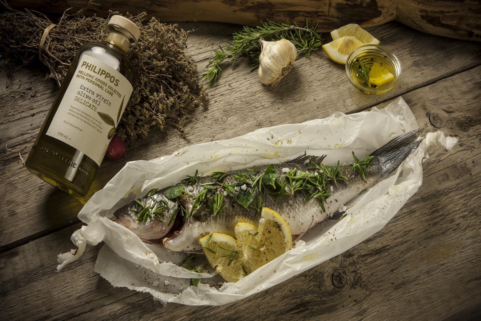 - Wash and season the fish, sprinkle with oregano, rosemary and olive oil.